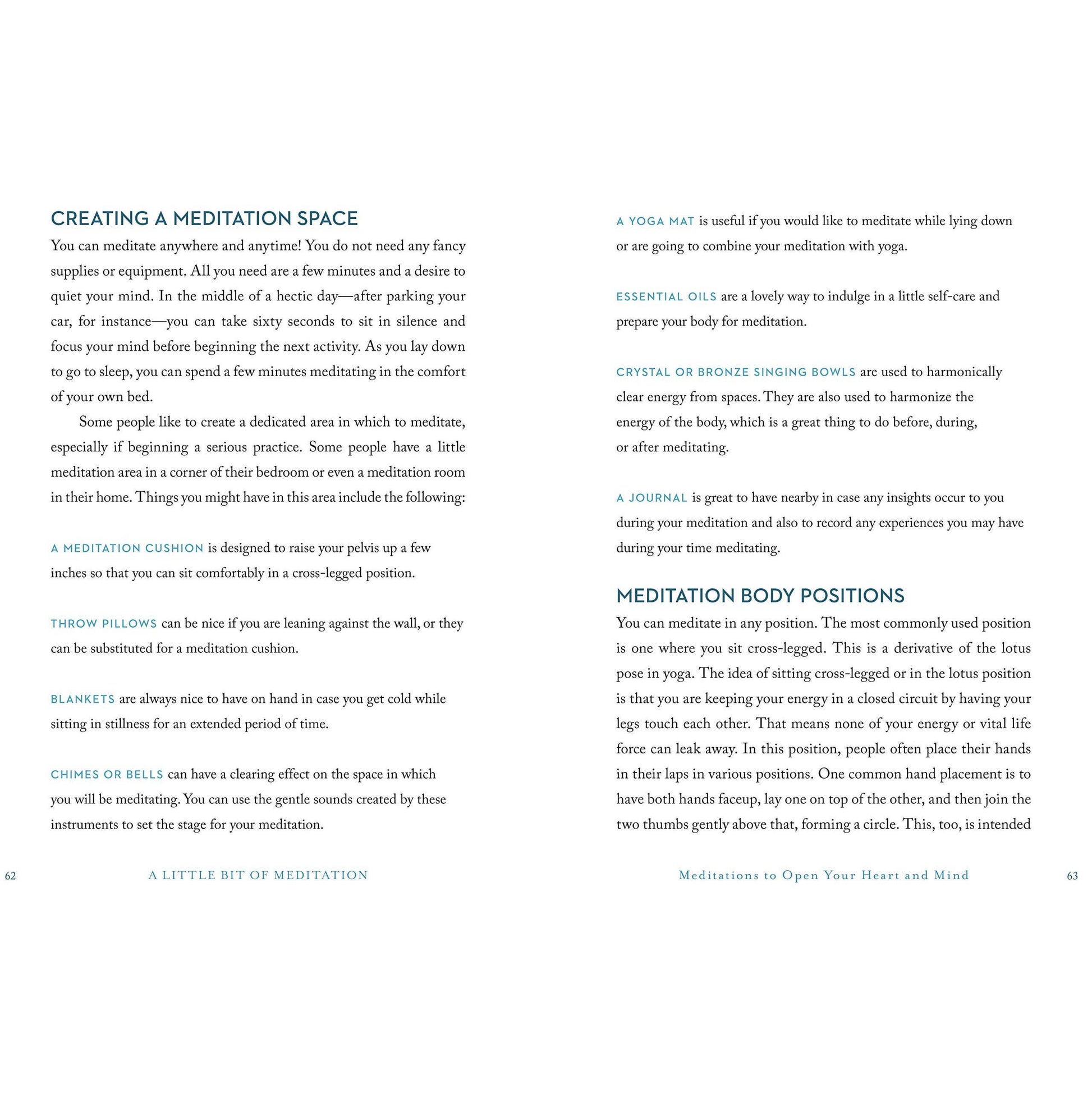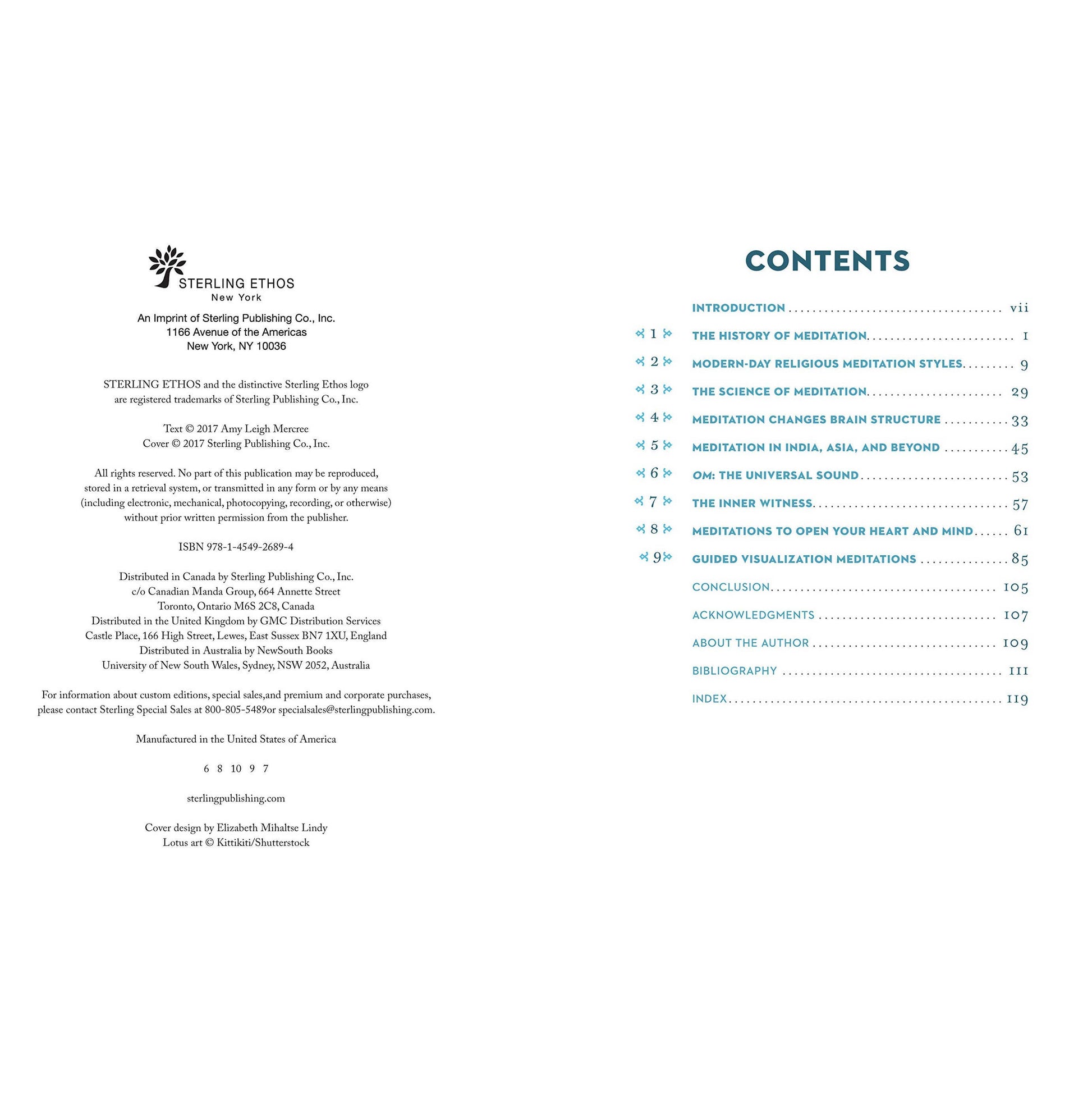 An easy-to-use, informative introduction to one of today's most popular spiritual practices: meditation. A great place to start on your meditation journey, this book explores the history of meditation and its origins as well as its practical applications. In addition to outlining how meditation can improve the quality of our experience on earth, Amy Leigh Mercree covers different forms of the practice, from mantra meditations to moving meditations. Meditation is a proven method of finding calm and coping with our crazy world. Amy Leigh Mercree explores the history of this ancient practice as well as its practical applications—including decreased anxiety and a more contented life. In addition to outlining the physical, emotional, mental, and spiritual ramifications of meditating, she includes a selection of easy-to-follow guided meditations.?Learn about meditation in an easy-to-understand introduction Hardcover book with printed laminated cover; 5 x 7 inches; 128 pages.