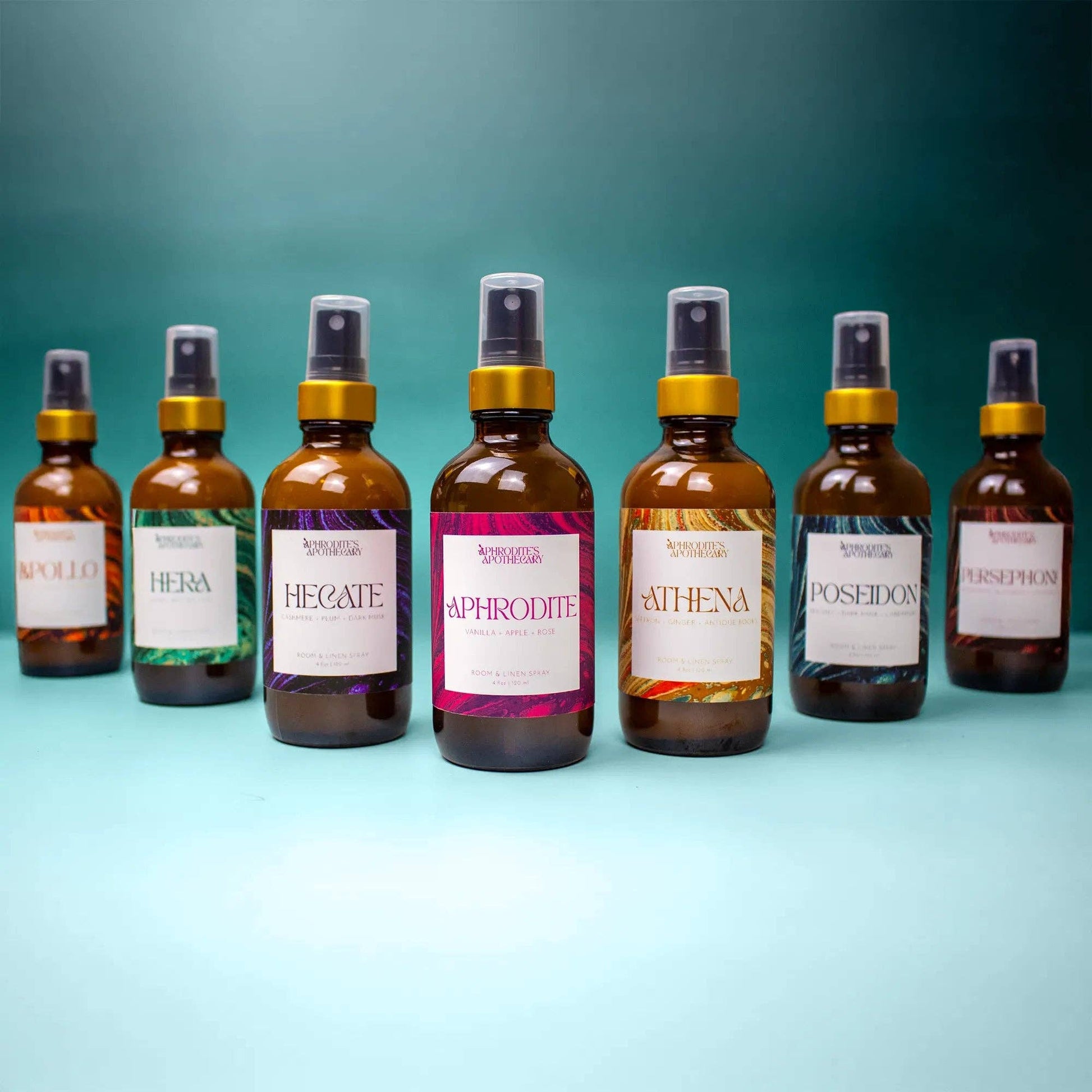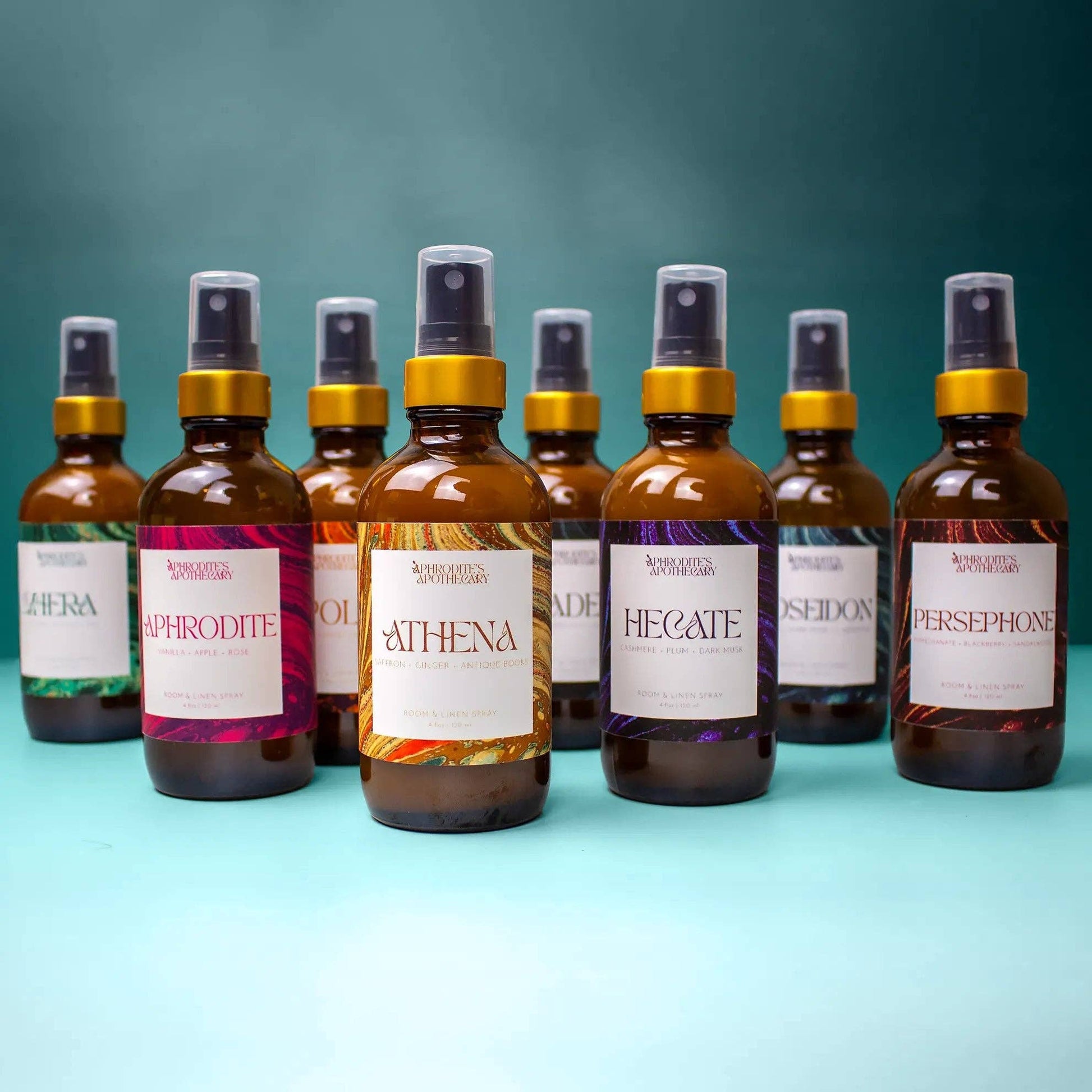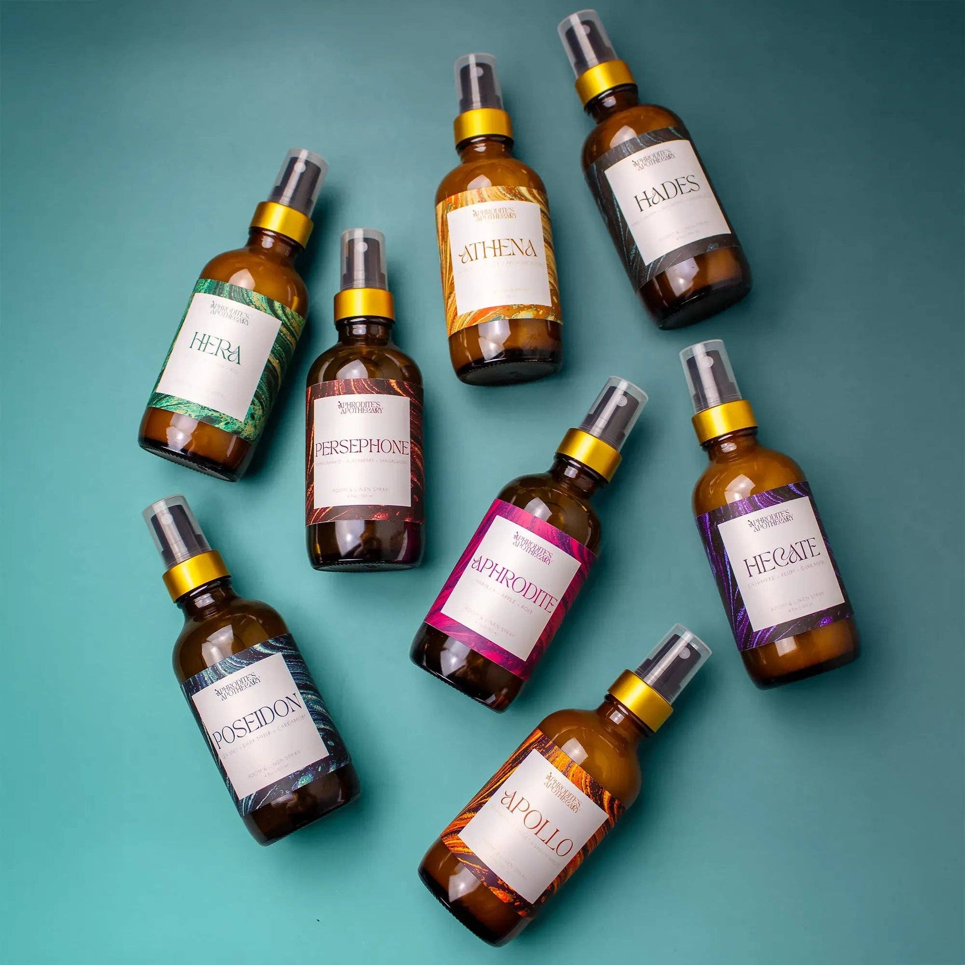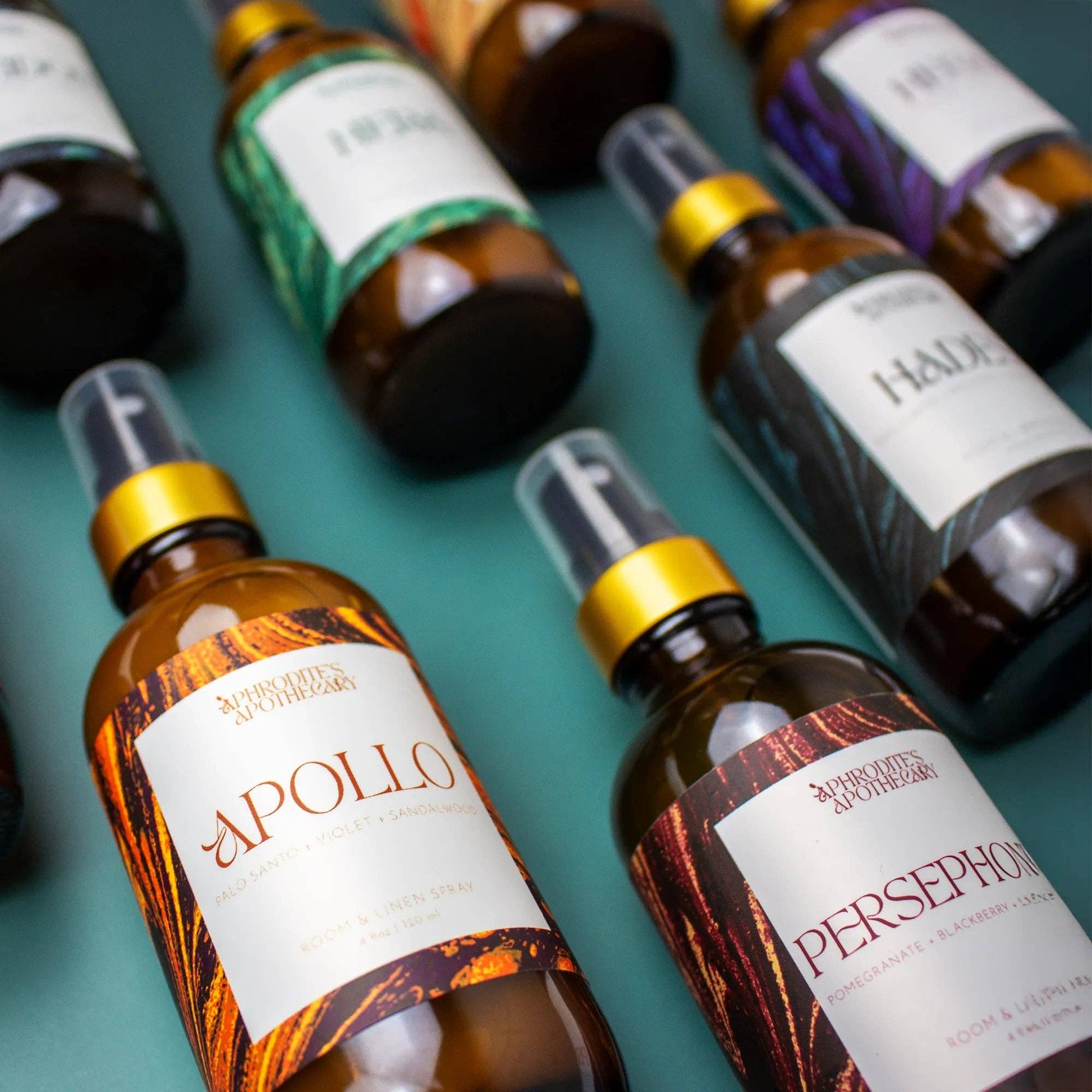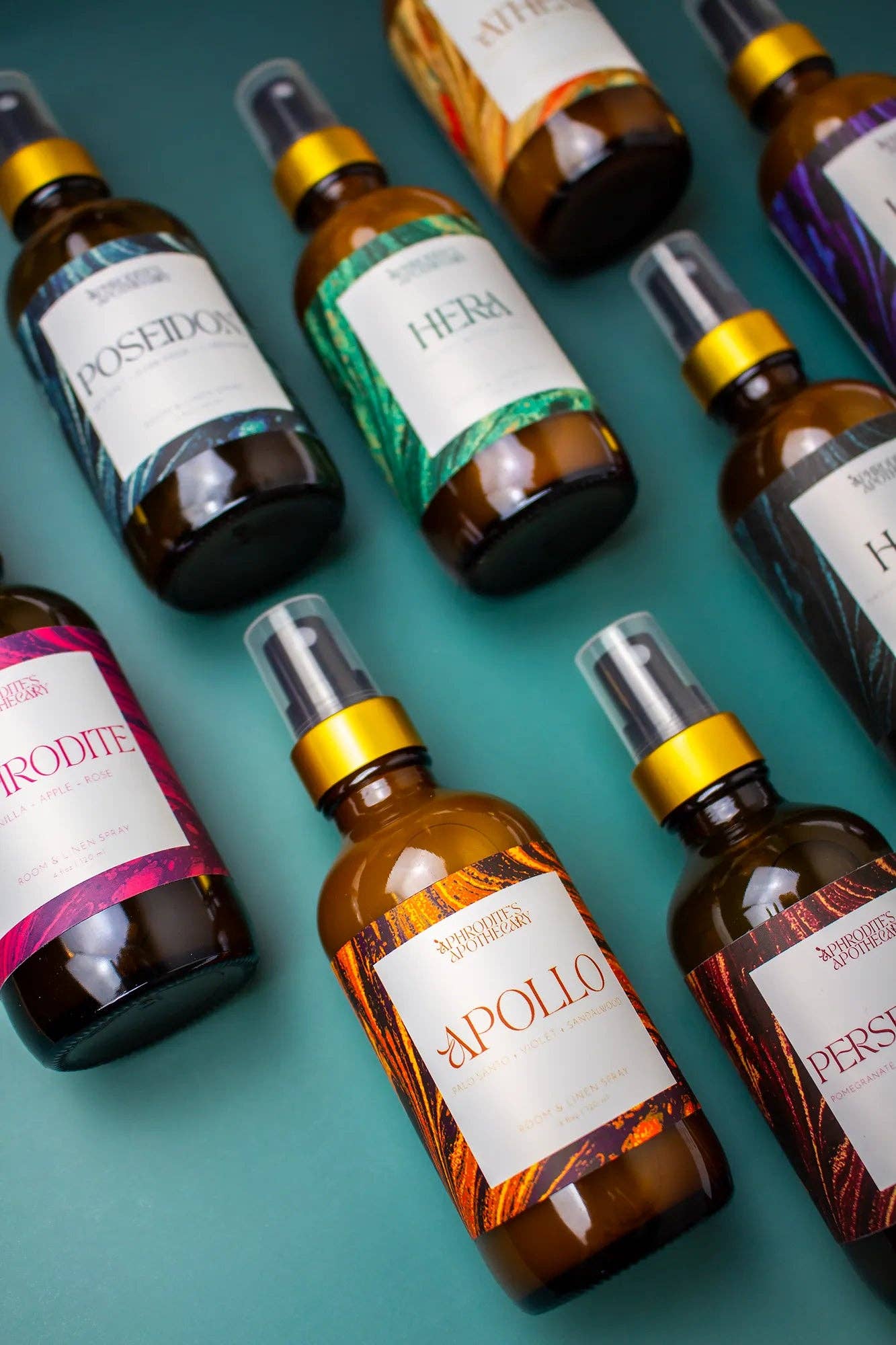 Our Apollo Room Spray pays homage to the god of the sun, prophecy, and music with an aromatic symphony. Top notes of violet and bergamot open the fragrance, floating like golden sunbeams dancing to Apollo's divine tunes. As the melody descends into the heart of the fragrance, you can feel the warmth of saffron and incense embrace you before base notes of Palo Santo and Sandalwood act as earthly anchors bringing you back to the mortal realm. Spritz our Apollo Room Spray and let it transport you to a place where the sun forever shines and the sweet melody of music echoes through the air.