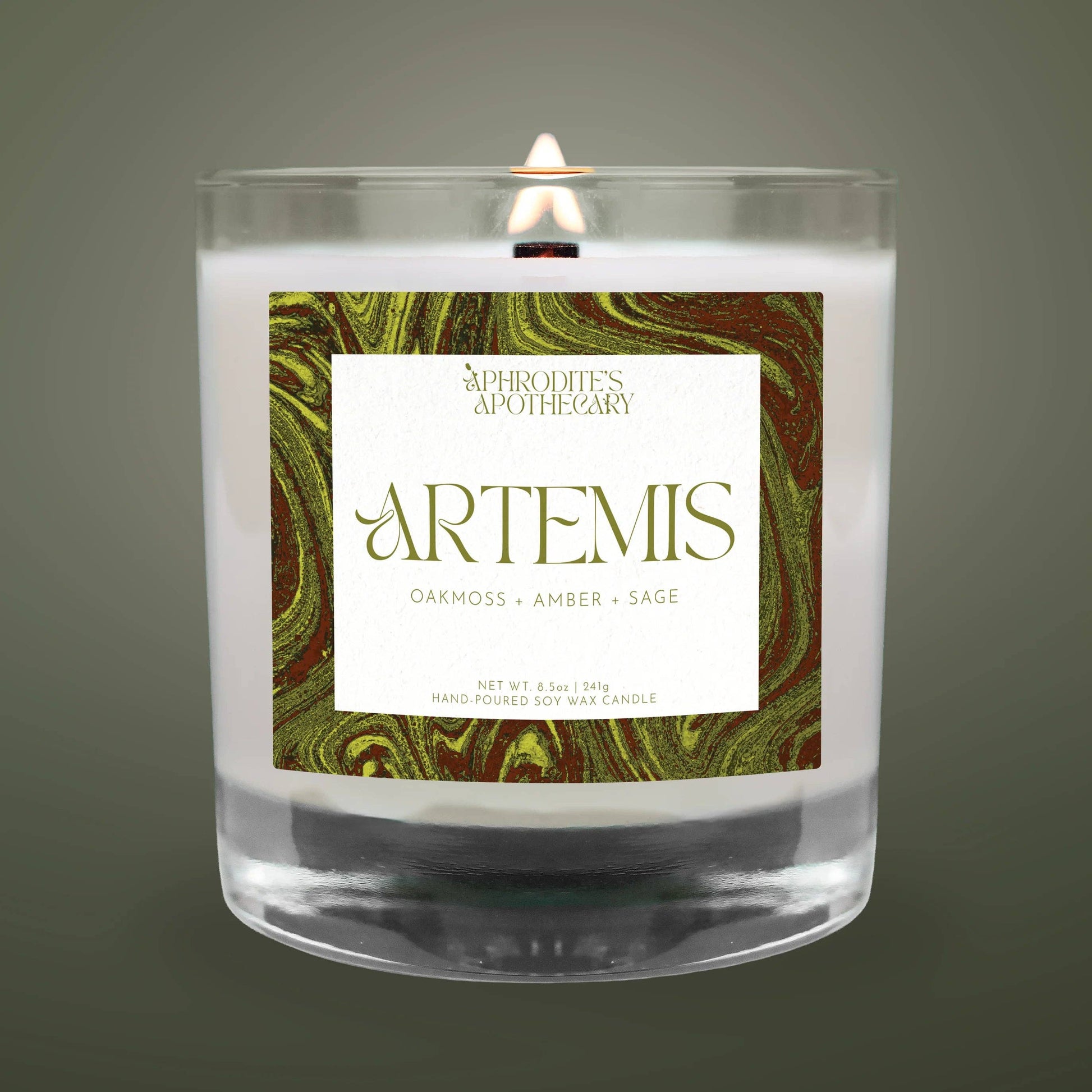 This petrichor candle will please even the pickiest of pluviophiles. Immerse yourself in the primal, earthy fragrance of our Artemis Candle and invoke the goddess of the untamed wilds. Inspired by the formidable goddess of the hunt, our Artemis Candle is a grounding scent that brings the essence of rain-soaked woods into your home. Top notes of sage and ozone float like mist through the forest canopy, blending flawlessly with mid notes of lavender and moss, grounded by the base of wet earth covering the forest floor. Light our Artemis candle and escape to the wilds with your new favorite scent!