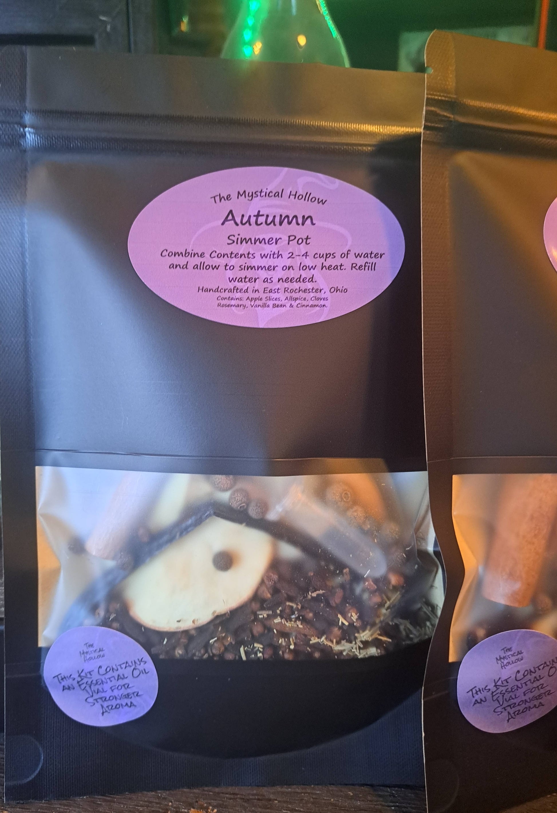 Welcome Fall into your space with these handcrafted Autumn Simmer Pot Kits. Each kit is handcrafted with the perfect blend to bring the Autumn feeling to your home. Each it includes and Essential Oil Vial of lavender for a stronger aroma.