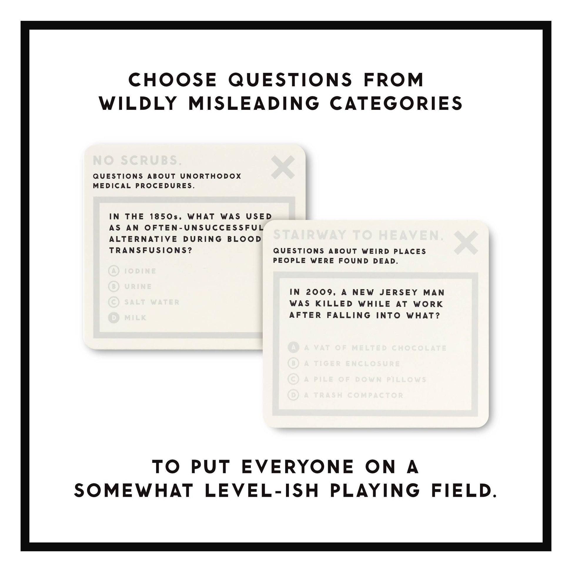 • Includes 200 unique trivia cards specifically themed around truly terrifying facts (that you'll probably regret learning).