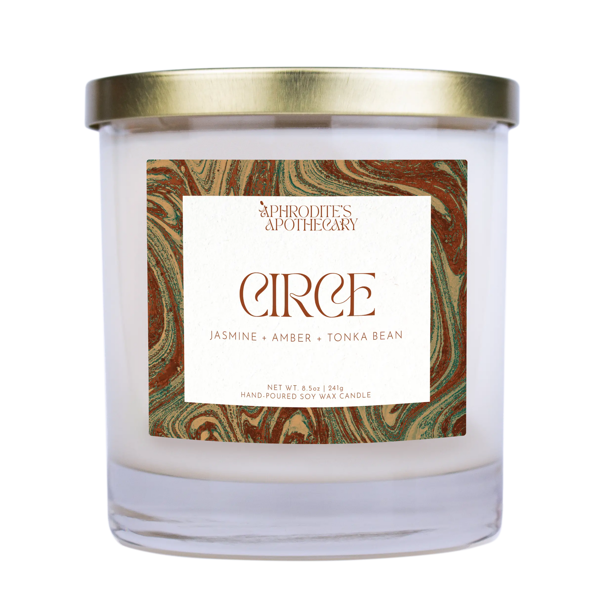 Balanced as all magic should be, our Circe Candle is a fragrance that oozes sensuality and challenges the stale concept of gendered scents. "Feminine" notes of jasmine and amber are grounded by the "masculine" aromas of musk and tonka bean. Like the sorceress herself, our Circle Candle turns tradition on its head, bending even the bravest of heroes to its will.