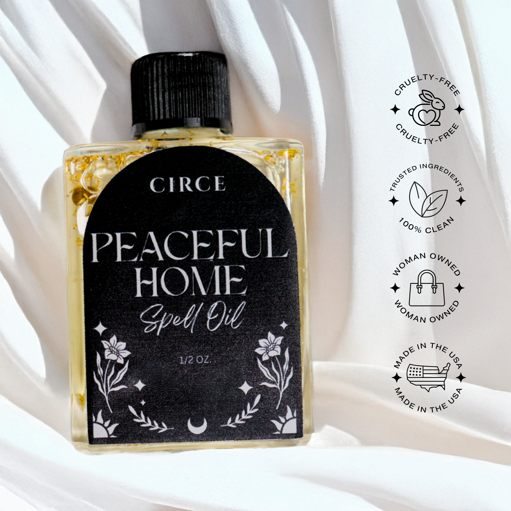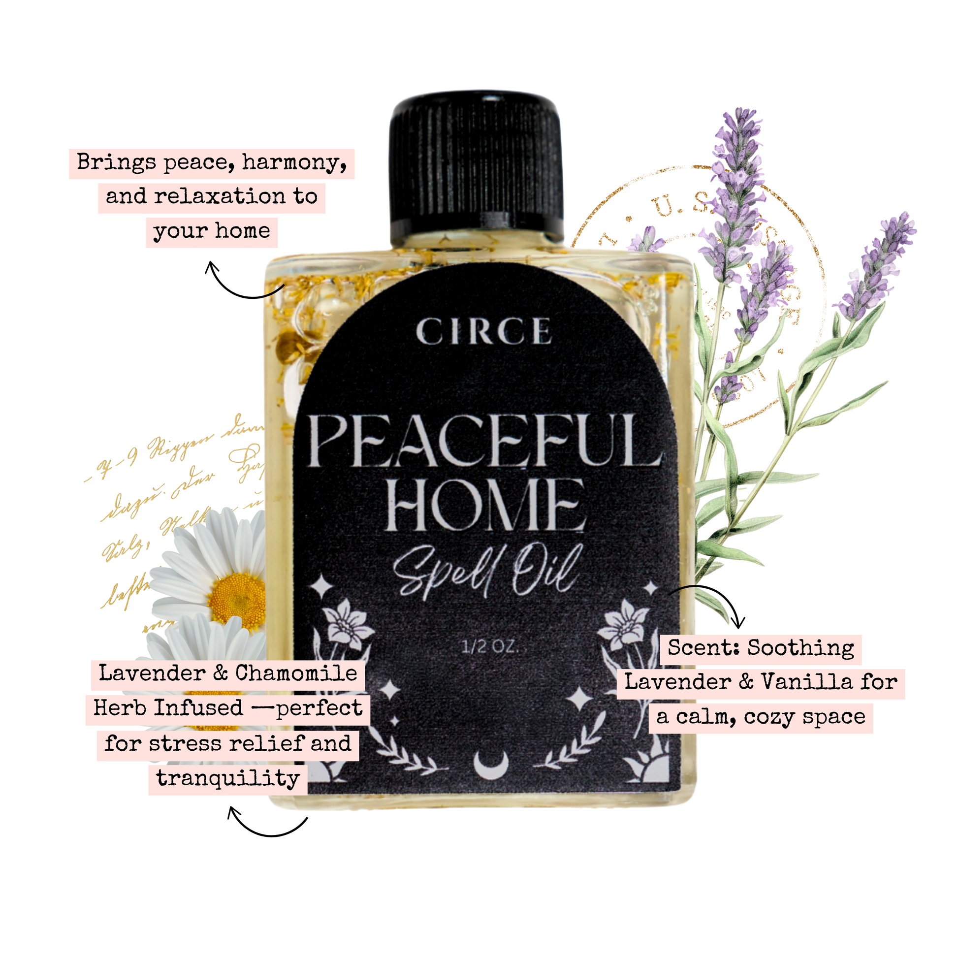Create a sanctuary of tranquility with Peaceful Home Spell Oil. A calming mix of lavender, chamomile, and vanilla, this oil promotes harmony, love, and serenity. Apply to doorways, bedrooms, or family gathering spaces.