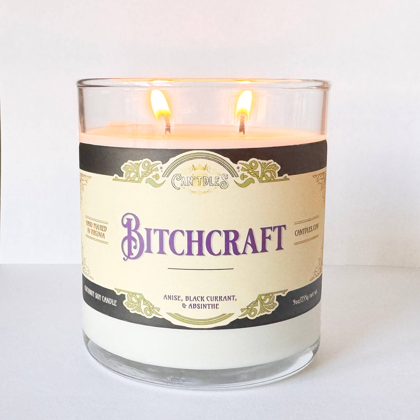 Behold the enigmatic allure of "Bitchcraft" - an autumn candle that'll cast a spell of mystery and delight over any luxurious abode. (And also make the recipient laugh!)