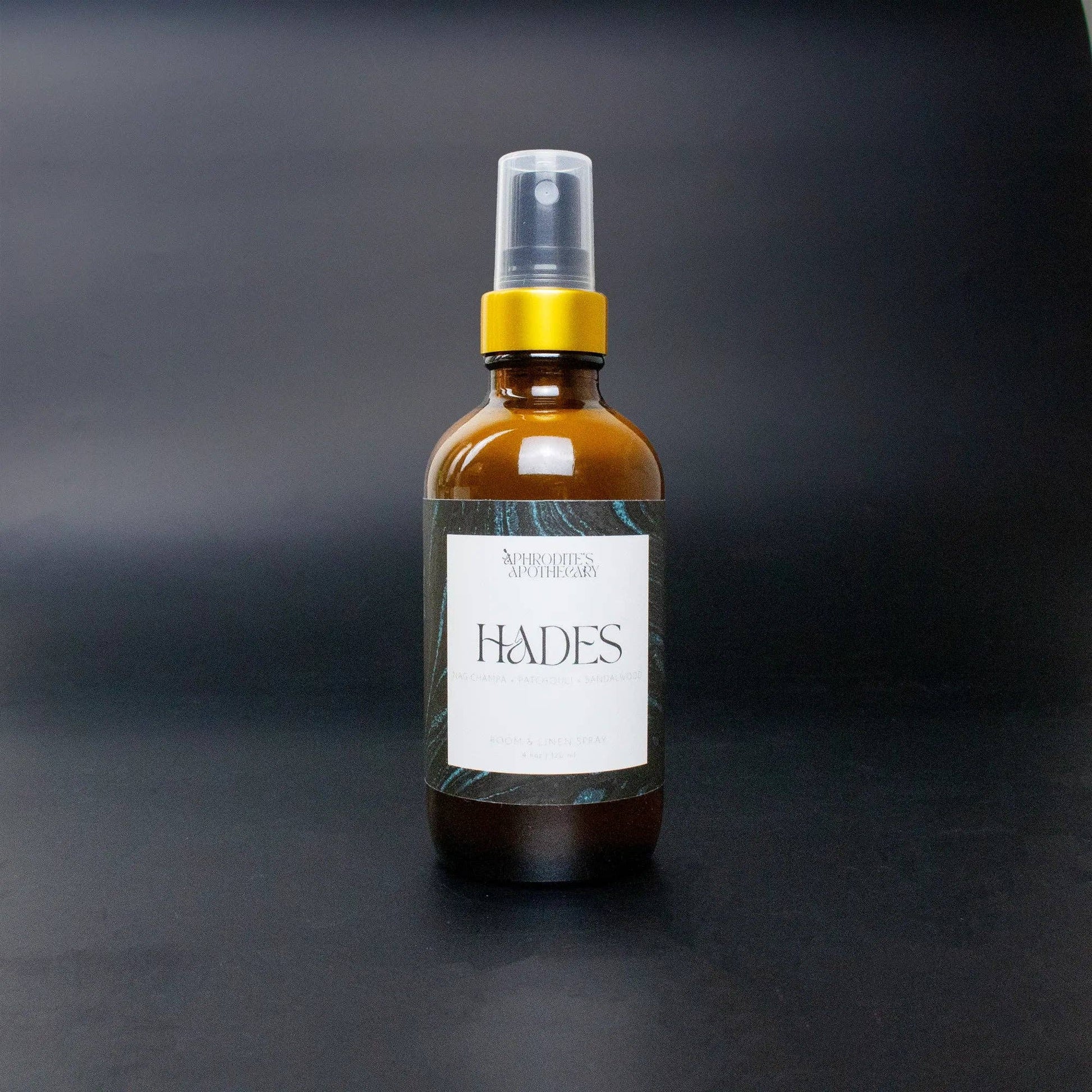 Slip into the shadows with our Hades Room Spray, a grounding fragrance of woods and incense fit for the underworld. Hades is a smoldering blend of bergamot, faint whispers of delicate florals, sitting atop a dry bed of patchouli, sandalwood, and musk - evoking the nostalgia of a '80s new age store or incense wafting from a church altar. Hades is the god of death and the Underworld, and, contrary to popular belief, he wasn't a bad guy -- just misunderstood (no, really)! Hades isn't even the god of death (that is Thanatos), he only rules over them!
