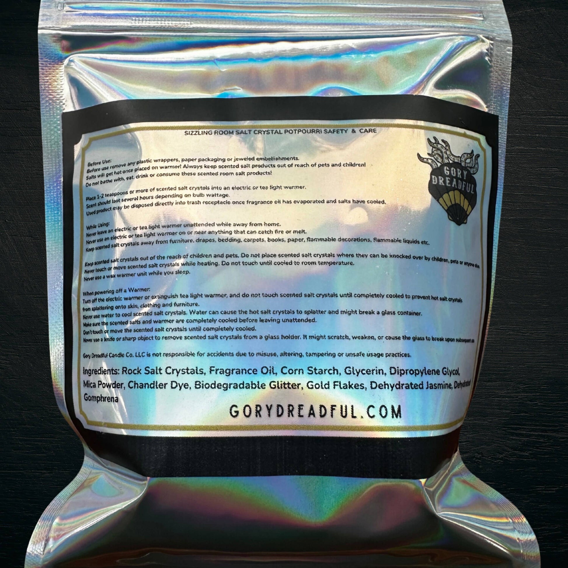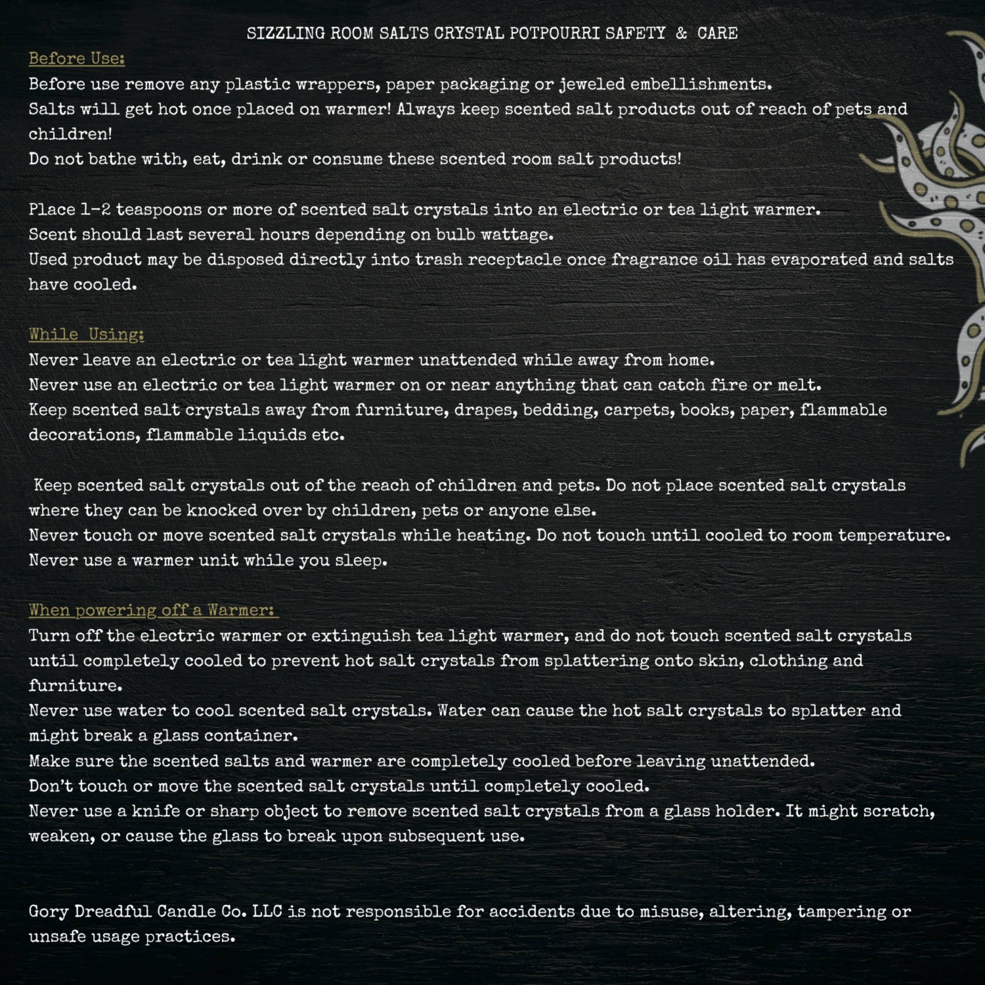 Gory Dreadful’s Sizzling Room Salt Crystal Potpourri are the perfect option for flame-free fragrance experiences.