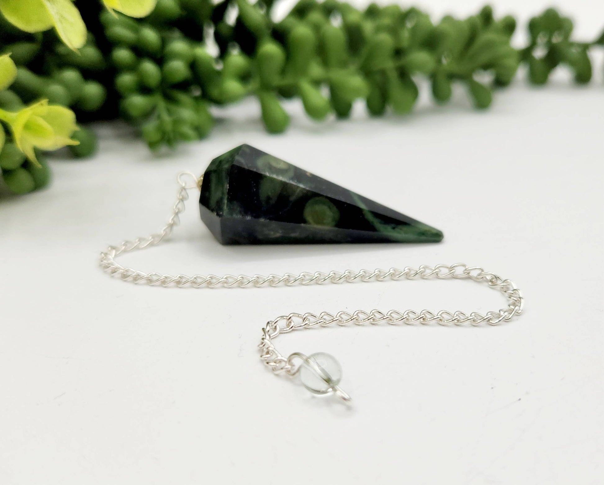 Kambaba Jasper Pendulum w/Silver Plated Chain & Clear Quartz