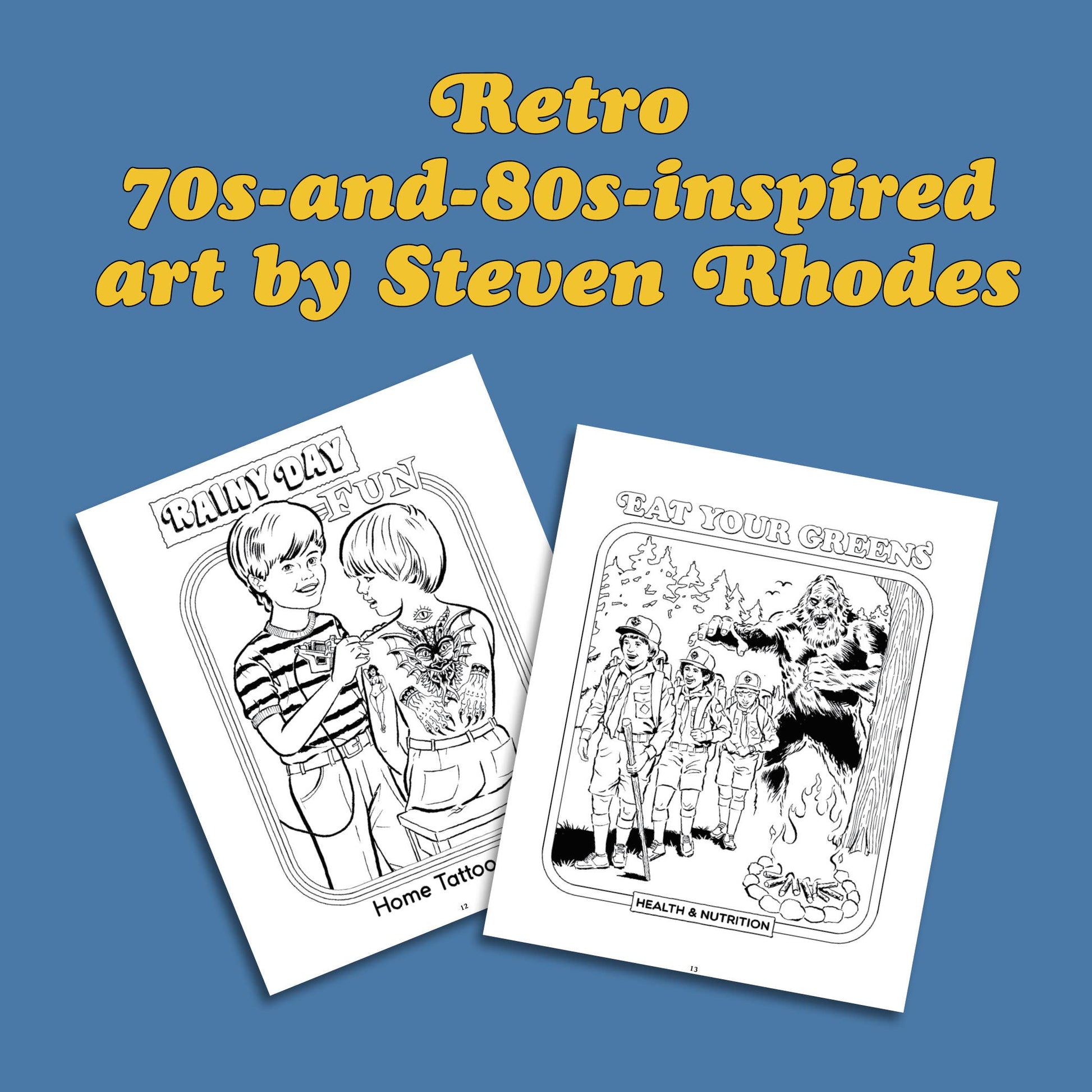 Coloring is spooky, demon-summoning fun in this interactive book from artist Steven Rhodes. Apply your dark artistic talents to these retro 1970s- and 1980s-inspired, wickedly funny pop horror and sci fi pages. . . IF YOU DARE.