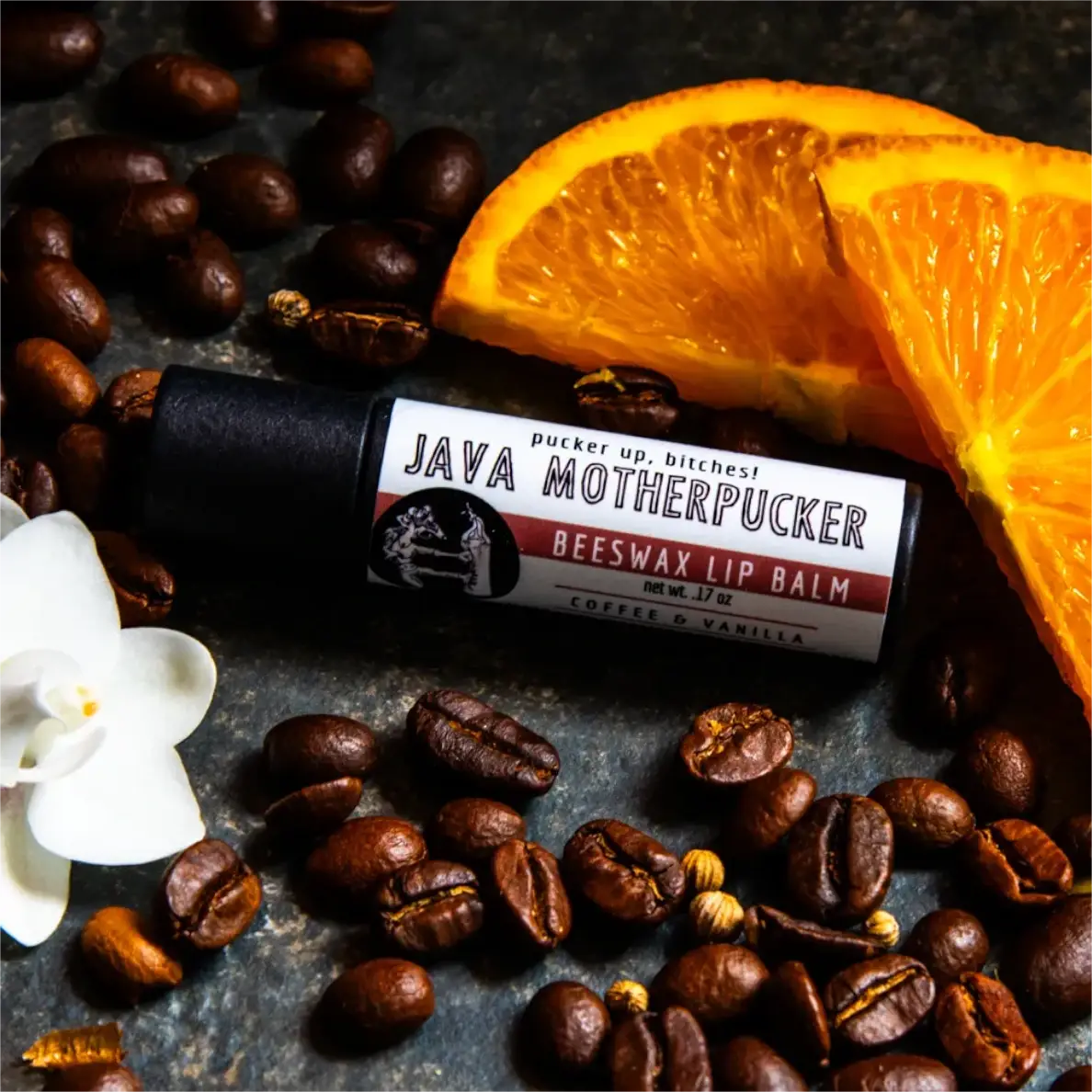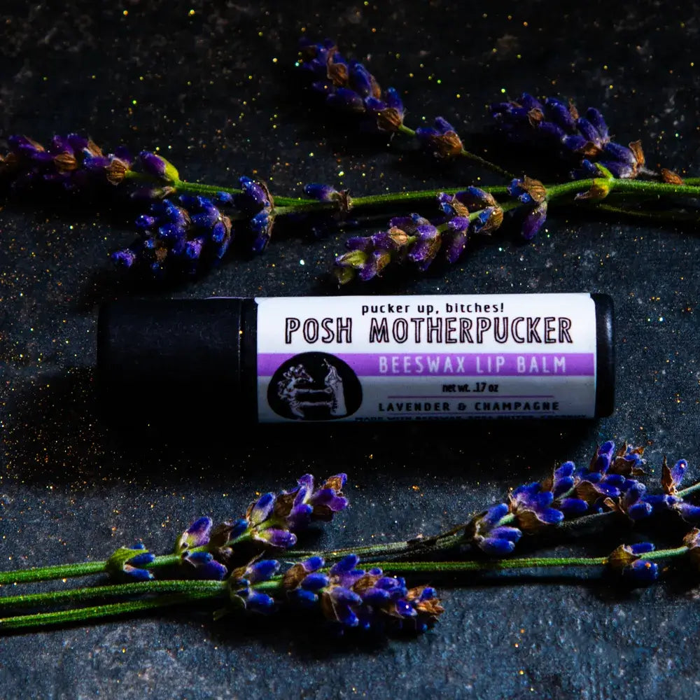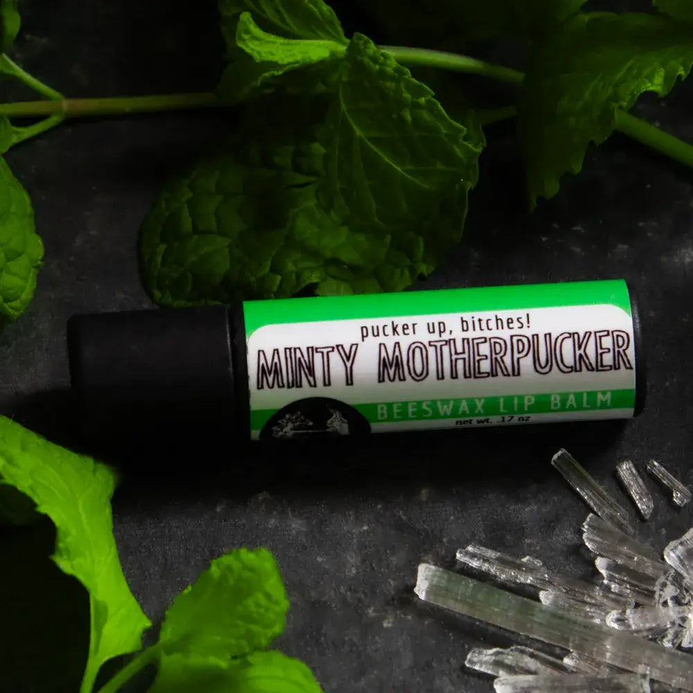 This funny lip balm display includes 12 plastic free lip balms in a recyclable display box. Choose one flavor or many for a colorful and snarky display by the register.