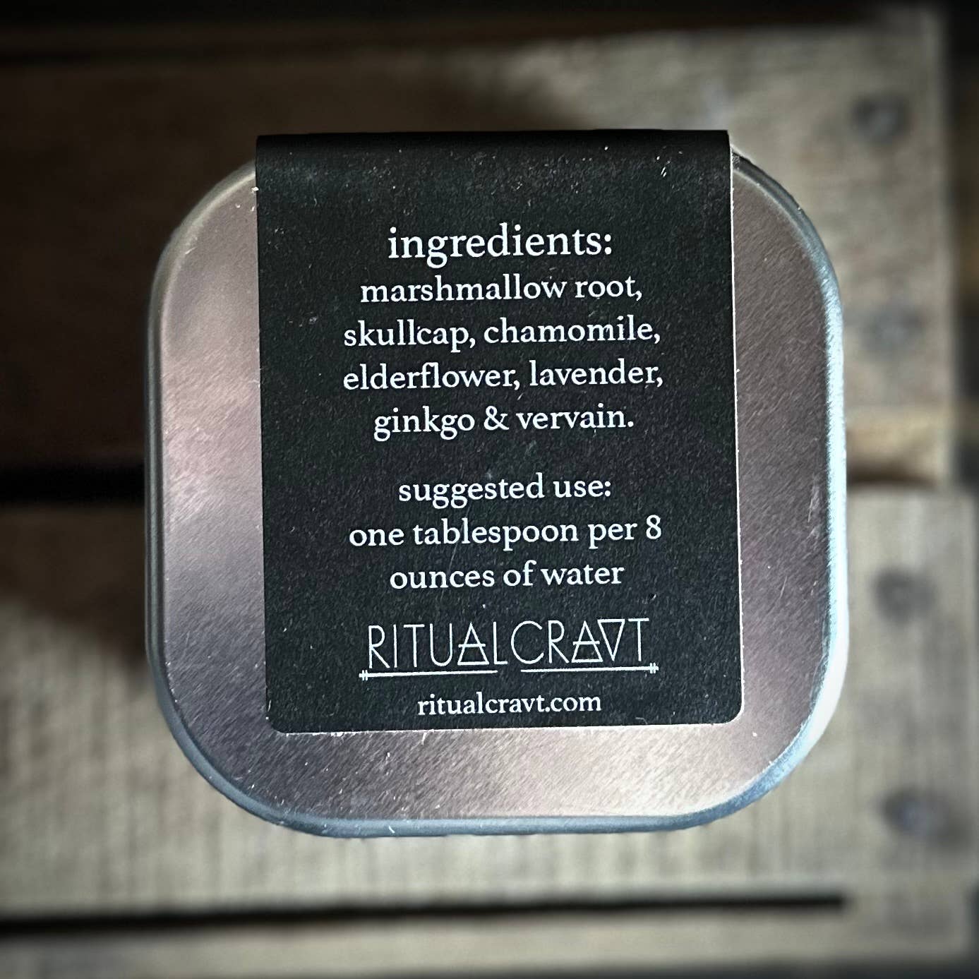 Ingredients: marshmallow root, skullcap, chamomile, elderflower, lavender, ginkgo, and vervain.