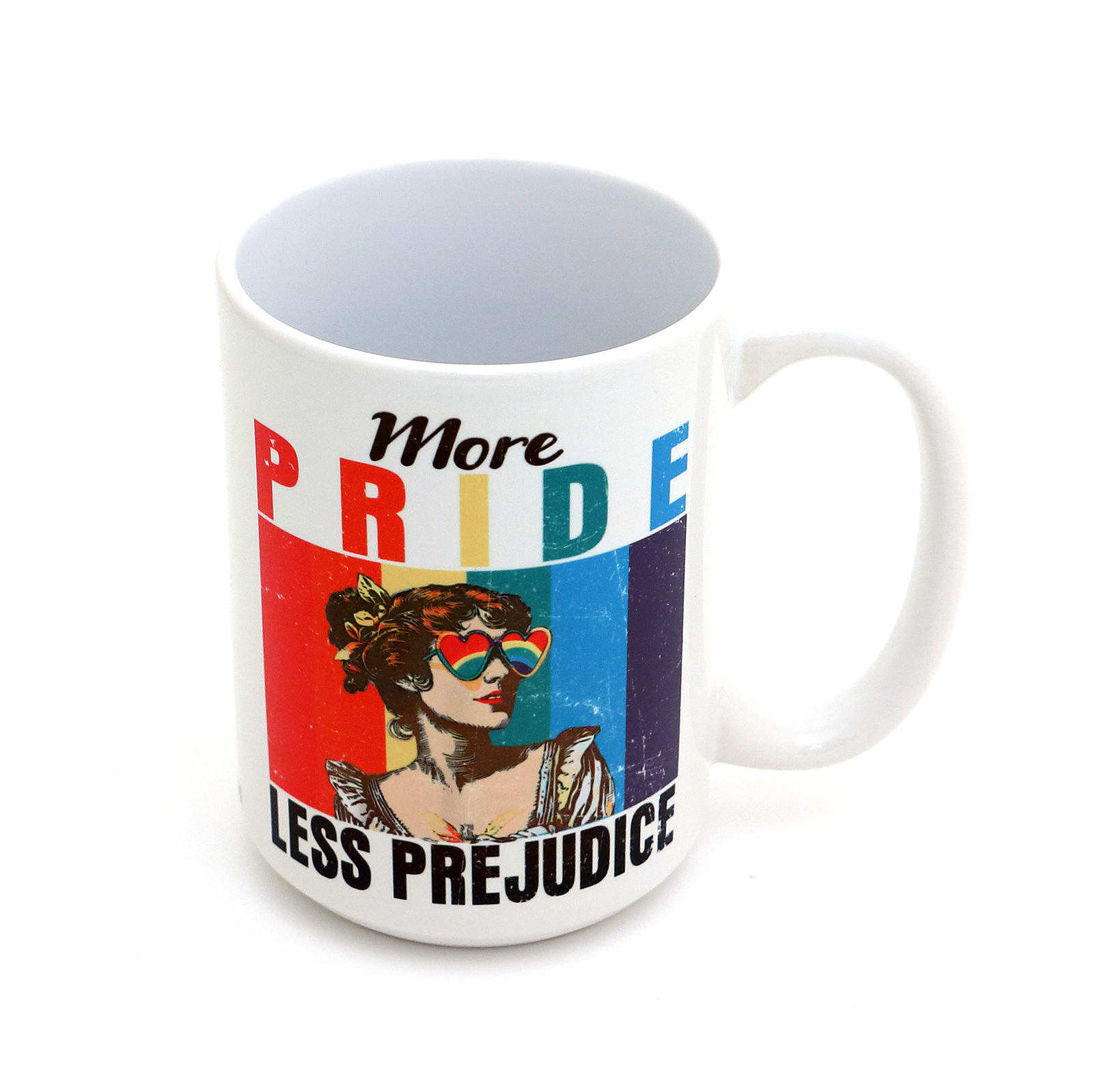 Calling all book lovers with big hearts! This cheeky "More Pride Less Prejudice" mug serves up a delicious literary pun with a side of equality. At a generous 15 oz., it's ready to fuel your marathon reading sessions while proudly displaying your LGBTQ+ support. The perfect gift for anyone who believes in both happy endings and that love is love—no matter what chapter you're on!