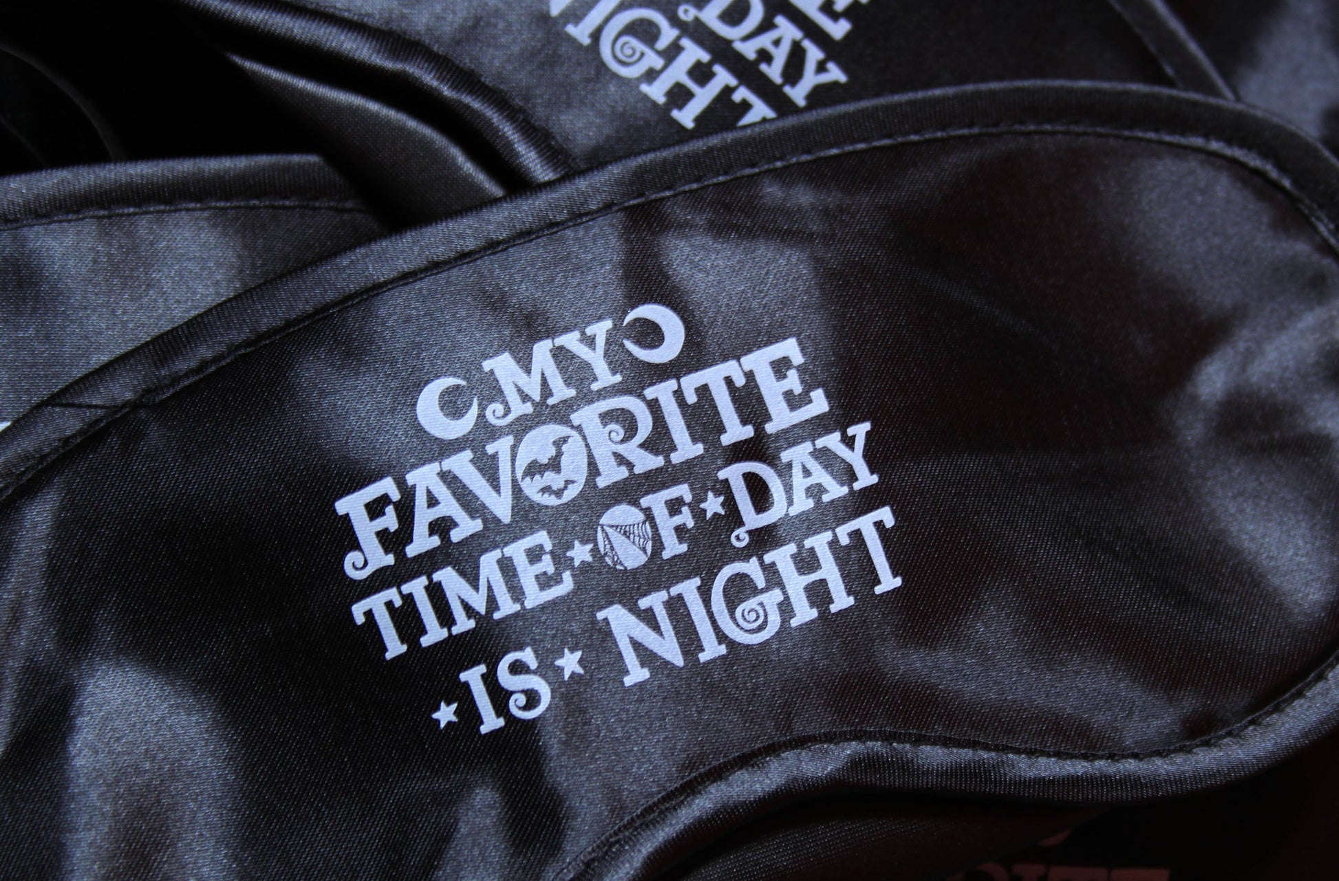 Slip into the My Favorite Time of Day is Night Sleep Mask for a spookily enchanting evening. For creatures of the night who need their freakin beauty rest.