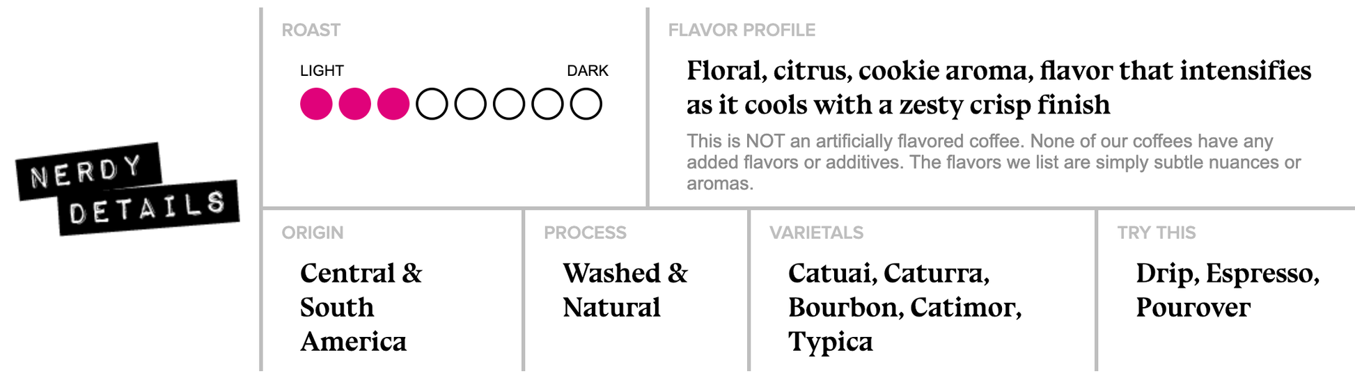 This renegade espresso coffee is light, bright and punchy. Despite the fact that it's a light roast, it defies the offs and works great with milk based drinks. With it's amped up intensity, it drives flavor through the milk.