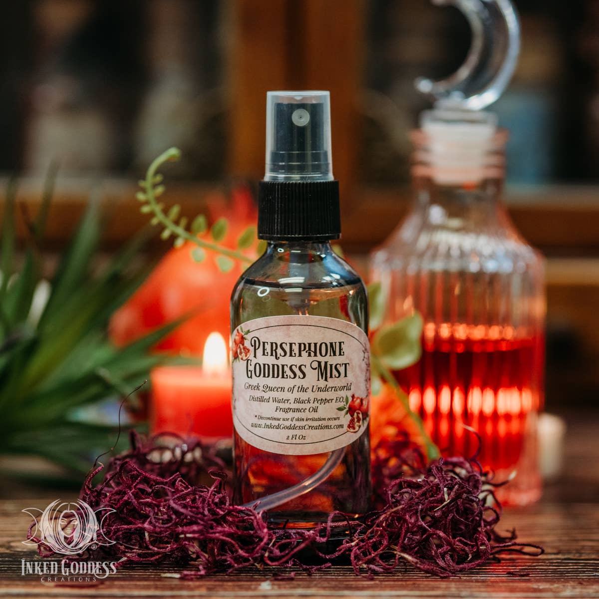 Connect to the Greek Queen of the Underworld with the Persephone Goddess Mist from Inked Goddess Creations.