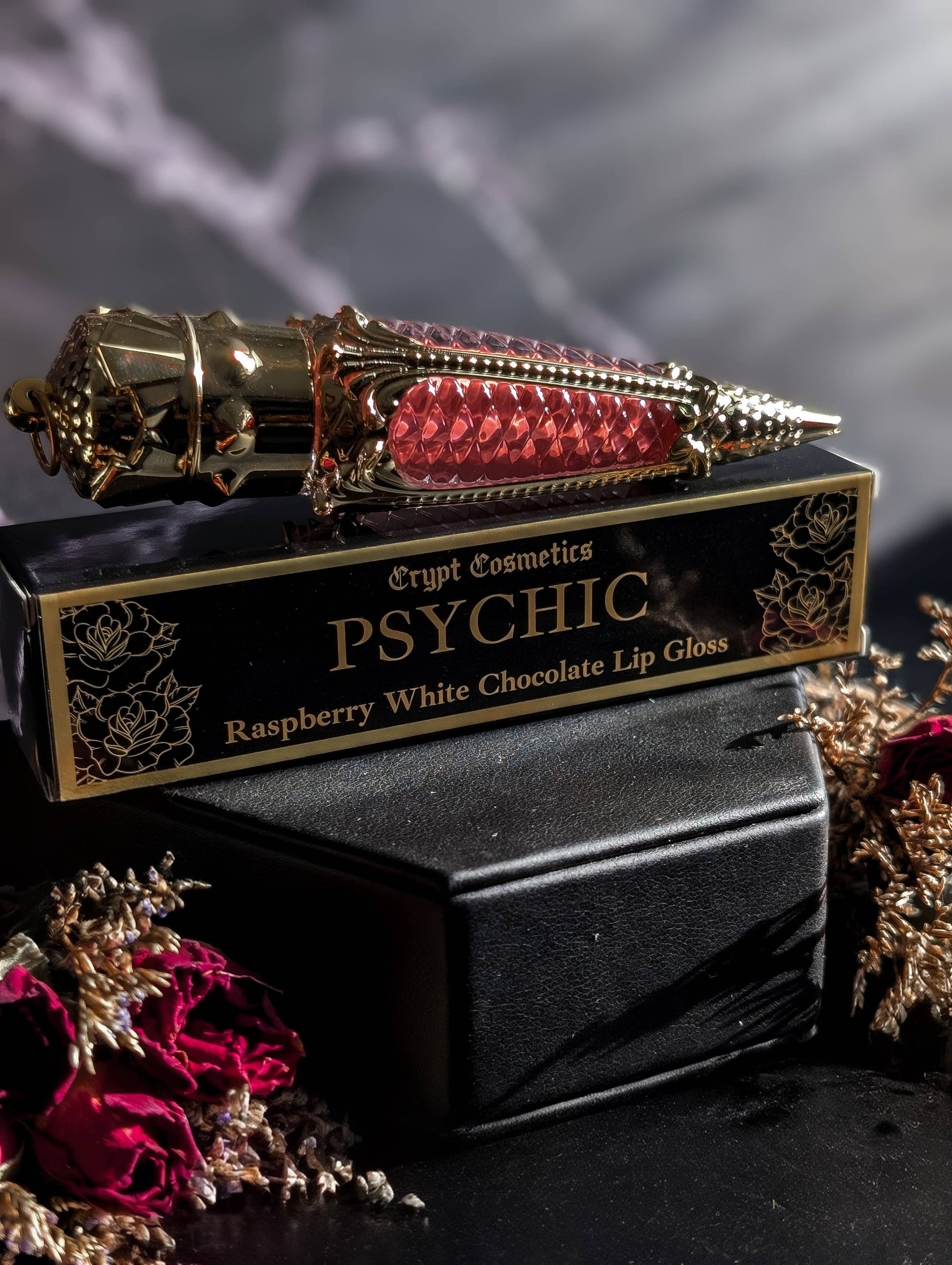 Get ready to make a statement with Psychic, a baby pink lip gloss 🖤 Our formula is made with vegan and cruelty free ingredients and features a white chocolate raspberry scent and bold pigment to wear either by itself or to give a glossy look to lipstick! Comes in a luxurious gold or silver bottle.