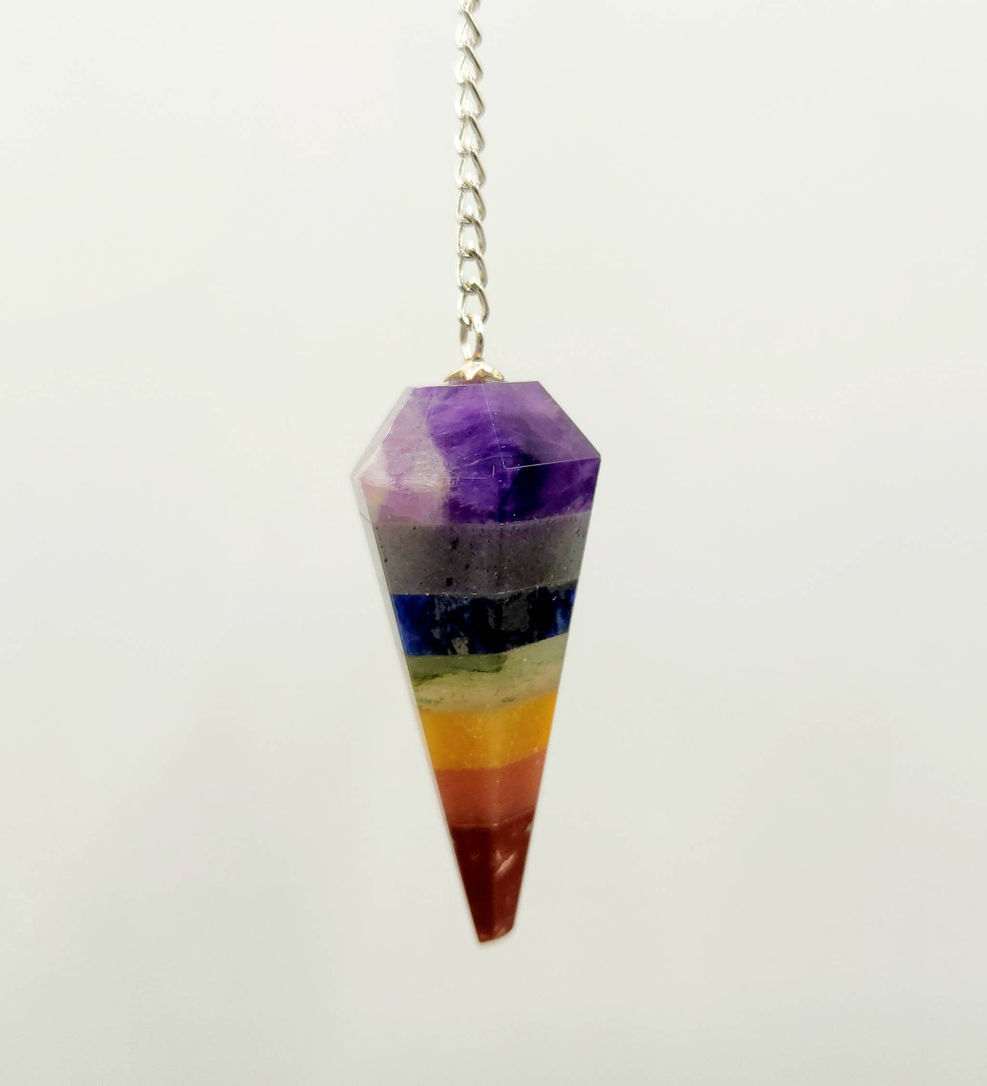 Seven Chakra Pendulum w/Chakra Beads-Silver Plated Chain