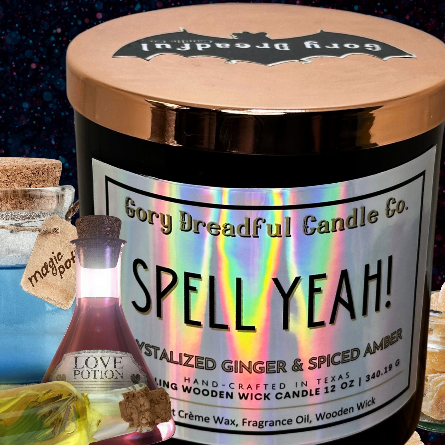 Spell Yeah! Crackling Wooden Wick Candle: Crystallized Ginger & Spiced Amber Scent