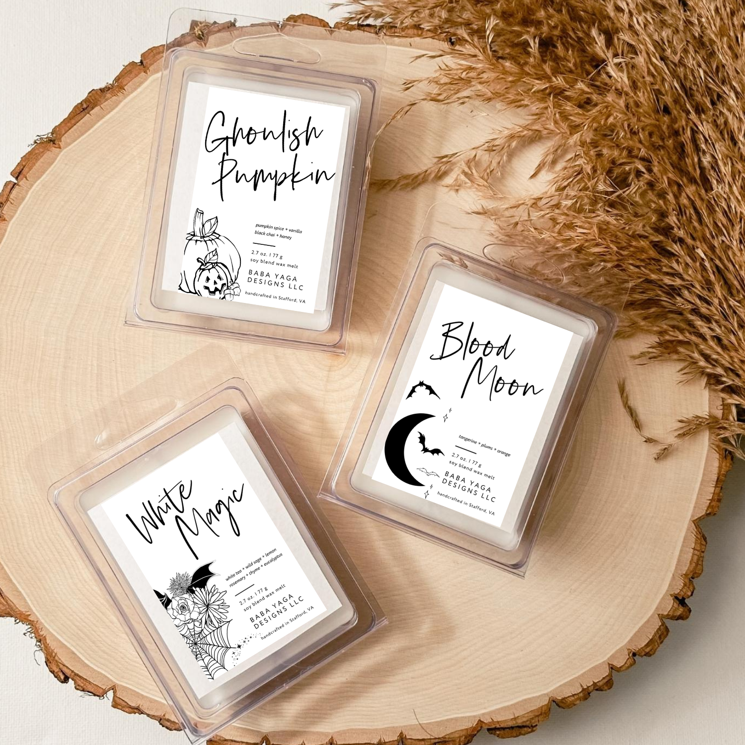 Hand poured in small batches in Virginia, USA. Baba Yaga Designs wax melts are handcrafted using: soy wax blend and the highest quality clean fragrance oils formulated with the industry’s most rigorous standards. Wax melts are best used in UL-listed electric wax warmers.