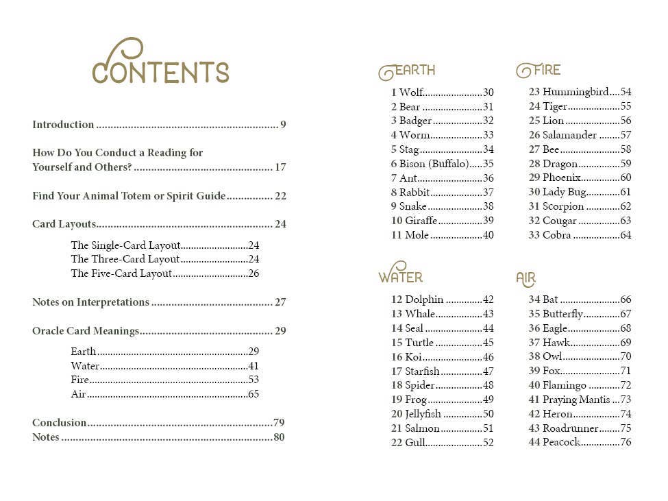 Delve into the mysterious animal kingdom with 44 beautifully drawn oracle cards on black background of animal and mythical archetypes that focus on the four Earthly elements. Through the included easy-to-use guidebook, allow these majestic creatures to assist you with their messages, lessons, and advice as you follow your own spiritual path. Find your totem animal spirit guide, and experience how animal wisdom adds to your day-to-day circumstances, questions, and long-term growth. Explore self-awareness and emotional and energetic diversity and understand the importance of Mother Nature. Pick a card a day to meditate on, use the cards as stand-alone pieces within simple to complex spreads, or add them to other oracle and Tarot decks to expand the messages from Spirit. Find that primal, core piece of you that is waiting to be reawakened with the powerful connection to your animal allies with wild elements!