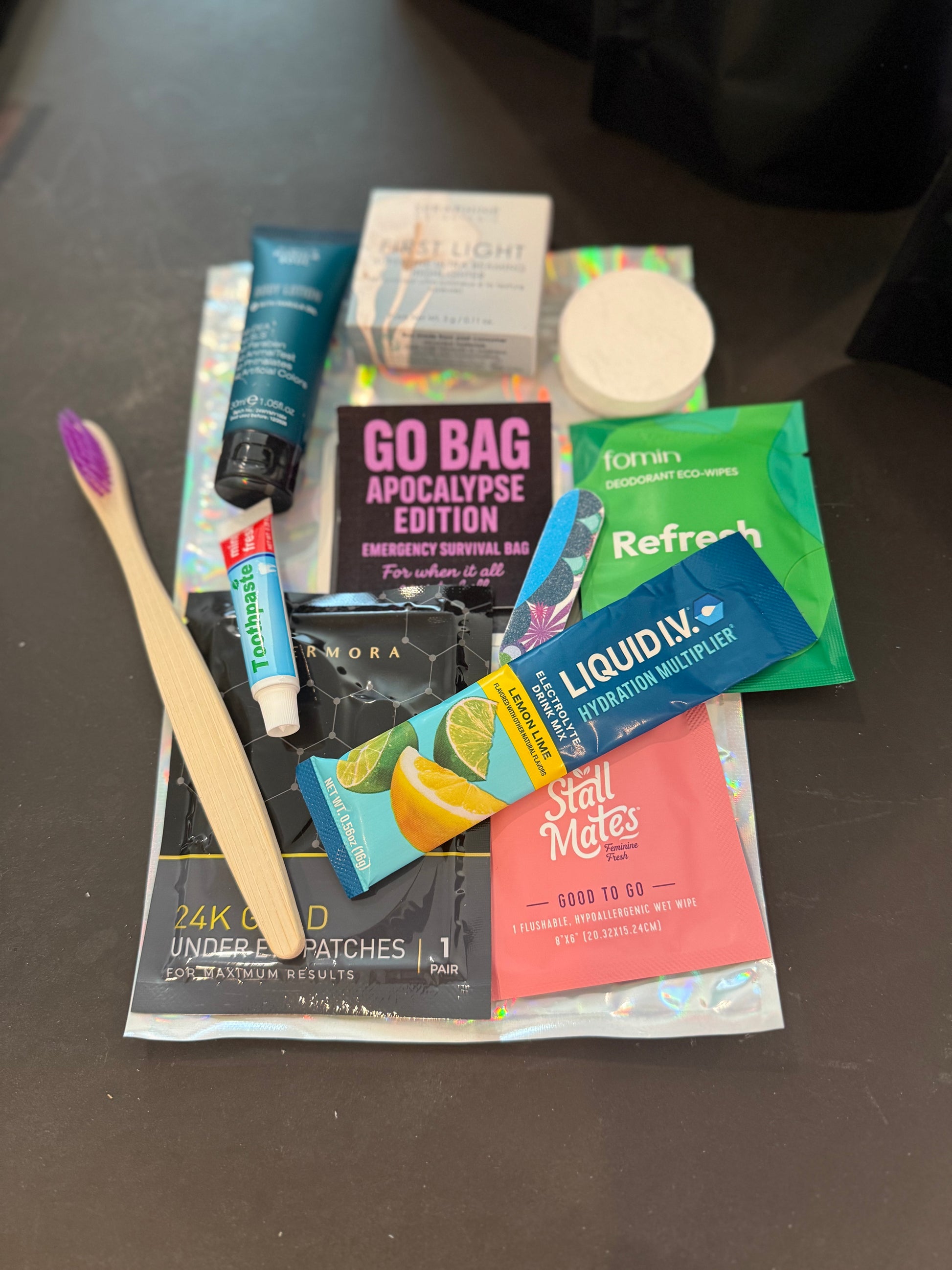 Whether you’re sneaking out, heading out, or just bracing for the end of days, our bags have you covered. Each one is packed with clever little essentials (and a healthy dose of sarcasm) to get you through the night, the day, or the drama. From the cheeky Ho Bag to the practical Go Bag to the end-times-ready Apocalypse Bag, these kits prove one thing: survival is always better with a sense of humor.