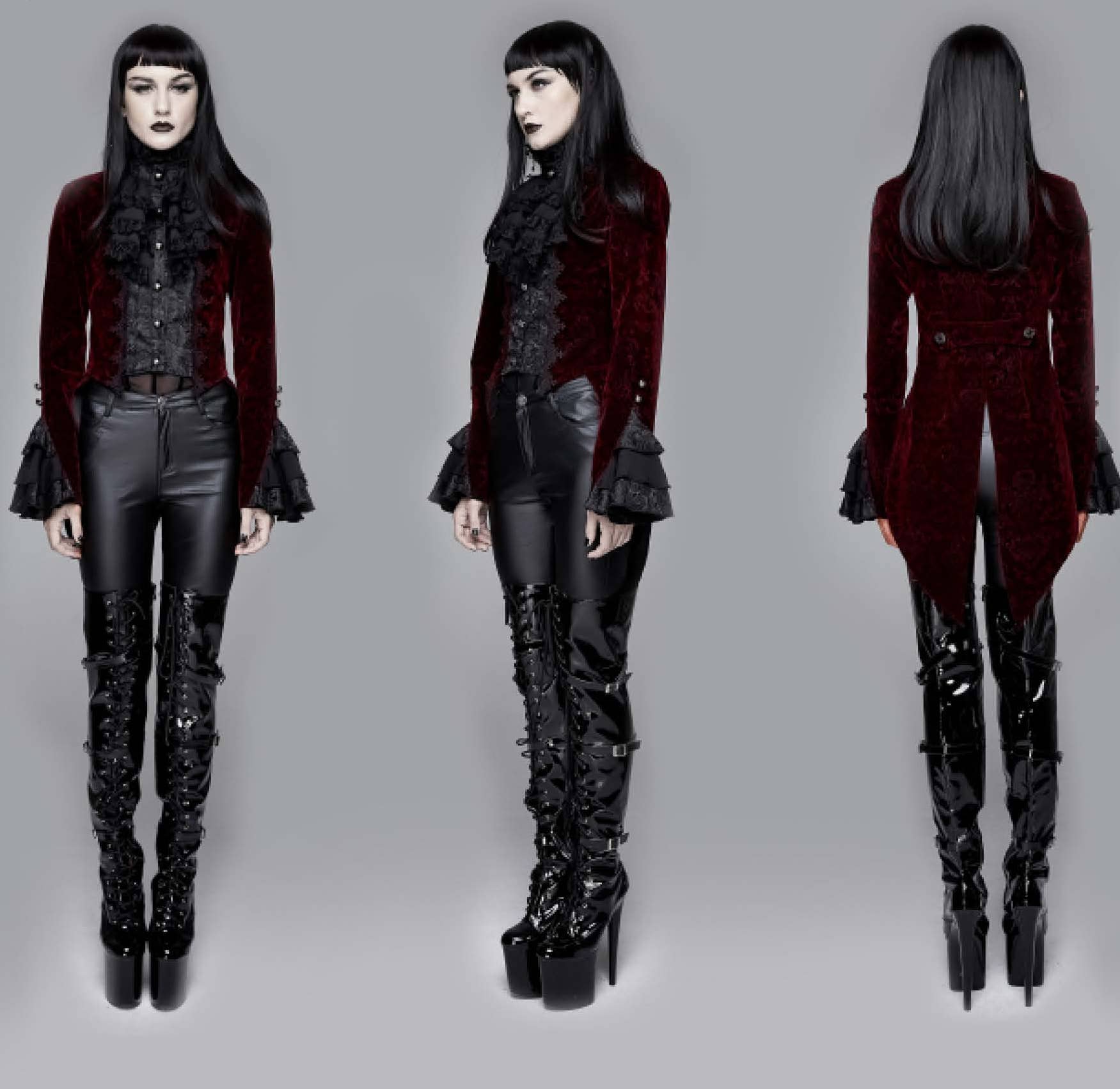 Victorian Red Velvet Burnout Jacket available in 8 sizes
