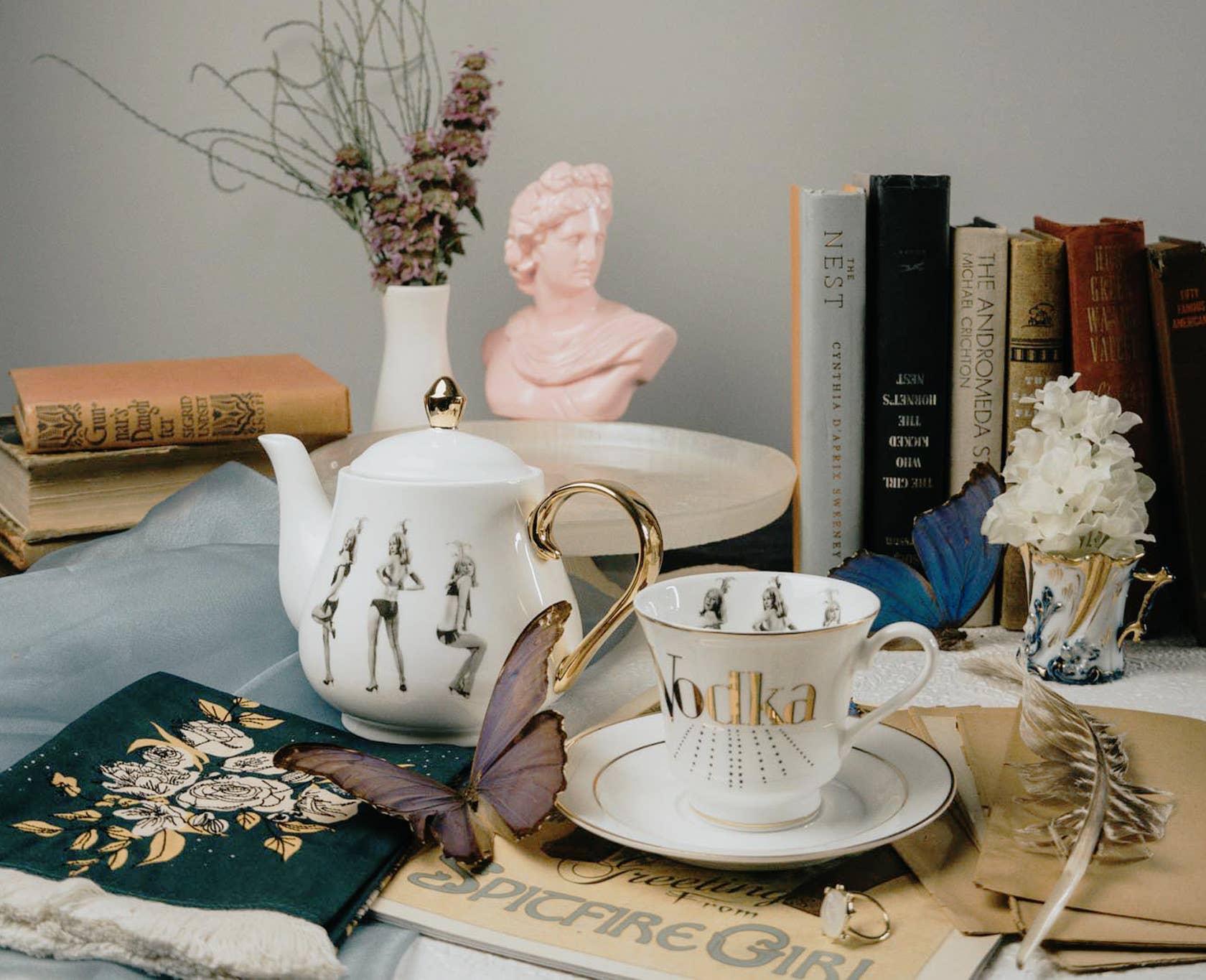 Regale yourself in the luxury of our newest collection of fine Bone China from Spitfire Girl. All Teacups come with a cup and saucer and are packaged in an elegant blue gift box with gold accents.