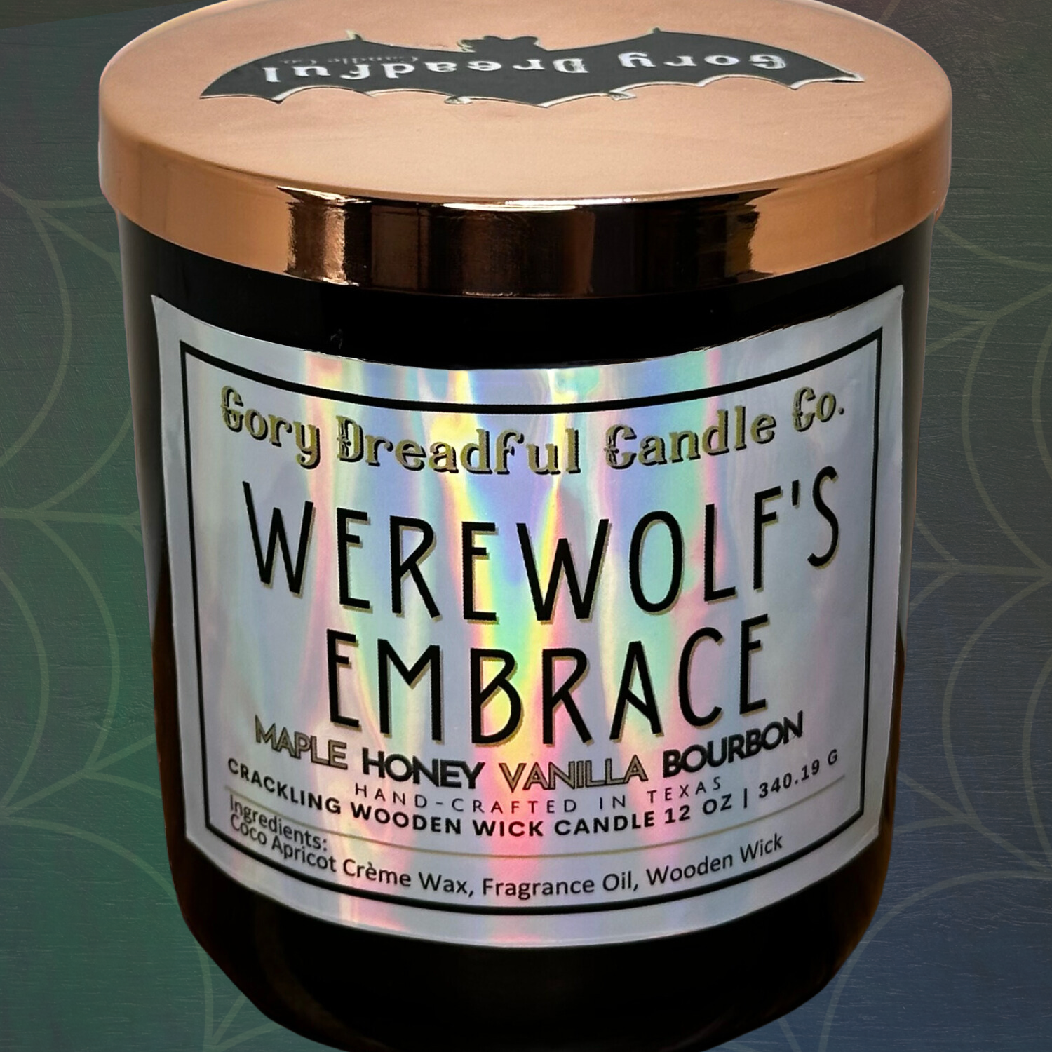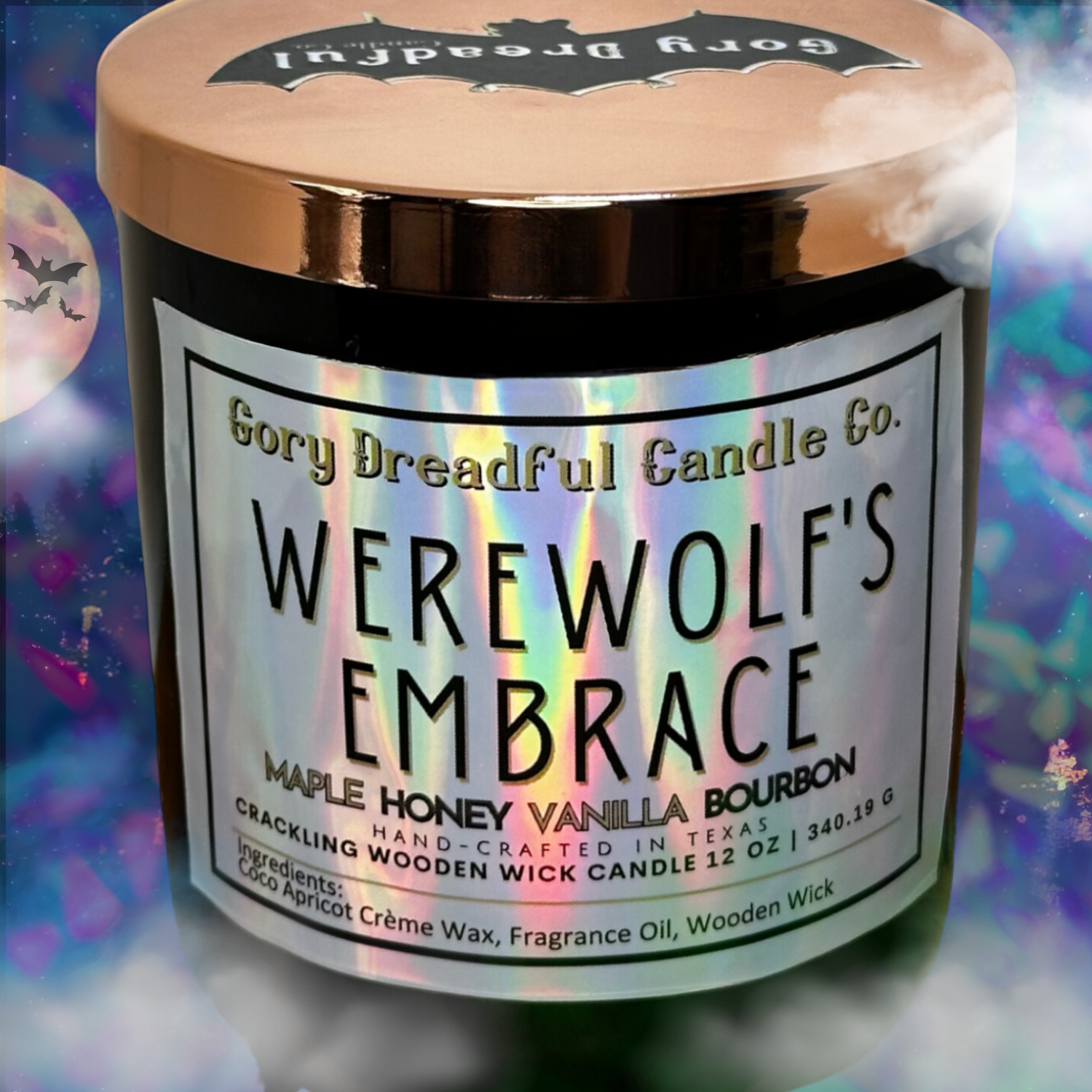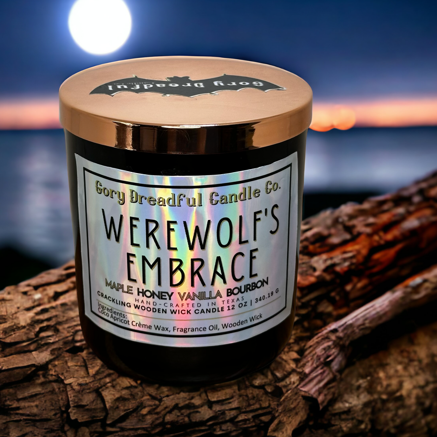 Werewolf's Embrace Crackling Wooden Wick Candle: Maple Honey Vanilla Bourbon Scent