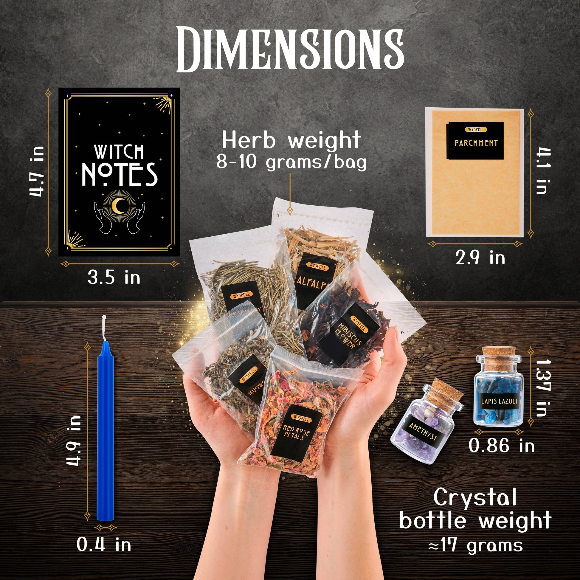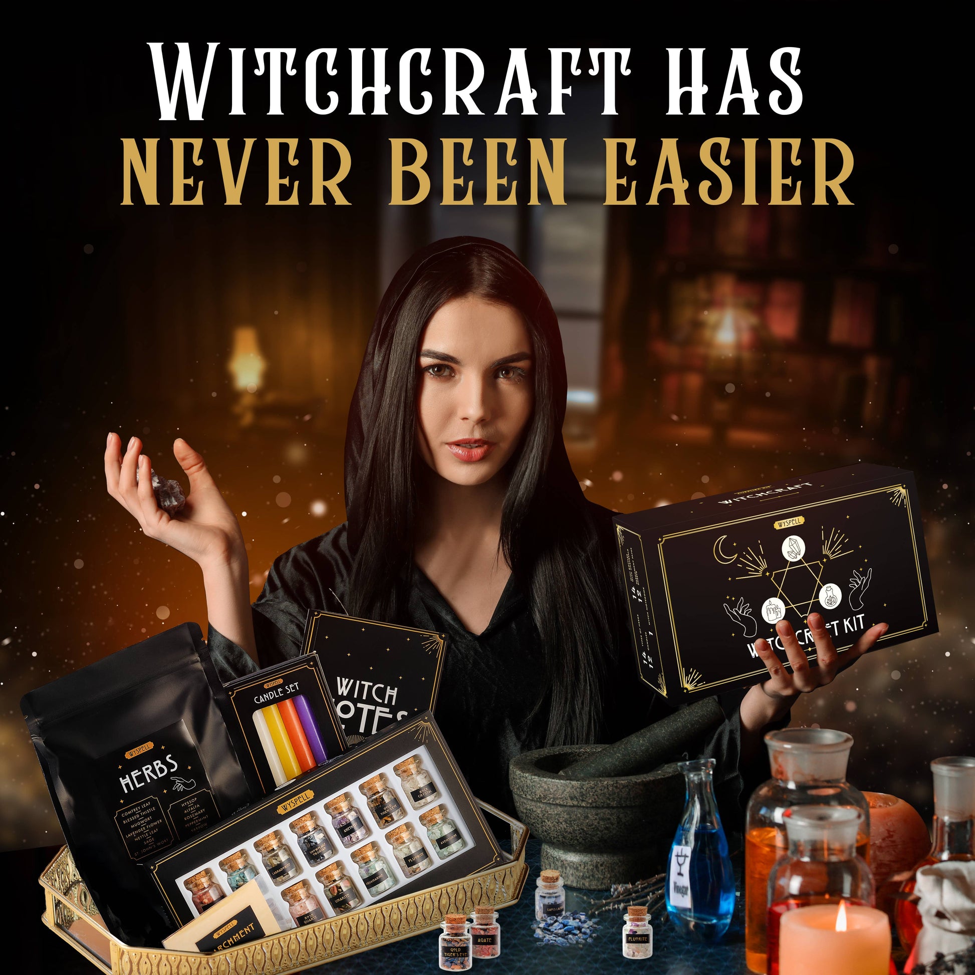 - MAKES A UNIQUE GIFT - Our adorable spell supplies will appeal to anyone fond of witchcraft! Packed in a fancy box with gold stamping, this complete witch box is the perfect gift for any occasion, whether you give it to yourself or the person you love